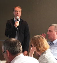 Il a suscité l’adhésion. A l’invitation de Pierre Kuchly, président de la CGPME 95, François Asselin, président national, est venu à la rencontre des 90 adhérents présents ce lundi, au Novotel de Cergy, pour échanger sur les élections des chambres consulaires qui se tiendront en octobre, encourager chacun à voter, mais aussi et surtout, pour parler du rôle et des actions de la Confédération, de son positionnement et de son fonctionnement. Les participants ont apprécié son parler « vrai », sa franchise son pragmatisme, tout comme la consistance de ses interventions. Un président efficace, sur la forme comme sur le fond, à l’aise dans la prise de parole, qui défend avec enthousiasme les PME – PMI et a recueilli le ralliement de l’assemblée.