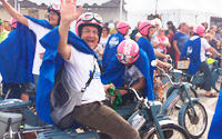 C’est la dernière ligne droite ! Les meules bleues s’élanceront demain sur les routes cergypontaines, pilotées par une quarantaine de chefs d’entreprise remontés à bloc, parés d’une cape bleue et d’un casque rose ! Les mobylettes traverseront 10 communes de l’agglomération et marqueront 5 étapes. Venez nombreux encourager ce drôle de défilé, au départ, à l’arrivée ou sur le parcours ! Le départ officiel sera donné chez Yamaha à 14h00, par Eric de Seynes, directeur général de Yamaha Motor France et Eric Offenstadt, pilote motocycle et automobile français.