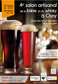 C’est devenu le rendez-vous des amateurs de bonne bière. Le Rotary club de Cergy organise le 17 et 18 mars le salon de la bière artisanale et du whisky au Forum des Arts et des Loisirs d’Osny. L’occasion de déguster (avec modération) les différents breuvages proposés et d’en emporter.