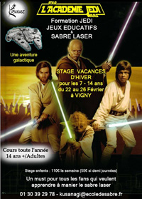 Pour marcher sur les traces de Luke Skywalker ou Obiwan Kenobi, l’école de sabre Kusanagi de Vigny organise pendant les vacances une formation Académie Jedi. Ils seront 11 padawans (apprentis) de 7 à 14 ans à suivre ce stage pour s’initier à l’art des combats de sabres laser. A la fin de la session, un spectacle de restitution sera proposé en présence des parents. [lire la suite]