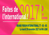 Mardi 28 novembre 2017 – 9h00 à 17h00 : Faites de l’International 2017 Partenariat des trois CCI  77/93 et 95  Organisation de rendez-vous avec des experts d’une trentaine de pays : Allemagne, Espagne, Grande-Bretagne, Norvège, Pays-Bas, Pologne, Portugal, République Tchèque, Roumanie, Turquie, Afrique du Sud, Algérie, Maroc, Etats Arabes Unis, Qatar,  Tunisie, Inde, Hong Kong, Japon, Brésil, Colombie, Etats-Unis (New York), Mexique….. Deux ateliers sur la sécurisation des ventes en ligne (contrats et e-commerce), l’autre autour de témoignages d’entrepreneurs ayant réussi à l’export et un moment d’échange proposé entre 12h30 et 13h30 entre les dirigeants à l’international sur des pays ou des secteurs ciblés. Maison de l’Environnement de Paris – Charles de Gaulle à Roissypôle Est. Contact : raccari@cci-paris-idf.fr